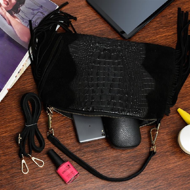 Listonoszka skórzana boho VERA PELLE Z24 czarna