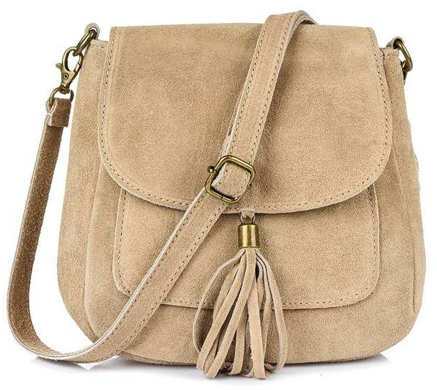 Zamszowy plecak damski c. beżowy Vera Pelle T53