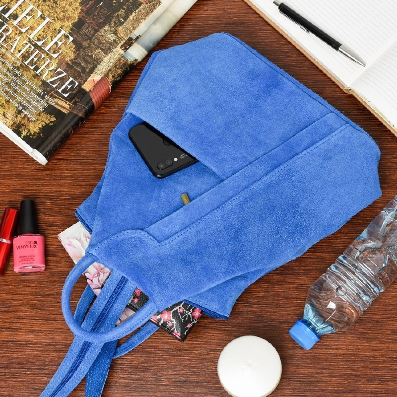 Zamszowy plecak damski chabrowy Vera Pelle T53