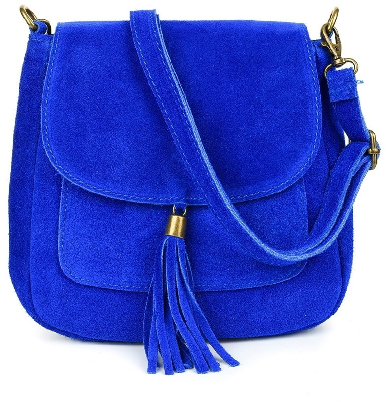 Listonoszka skórzana boho VERA PELLE Z24 chabrowa