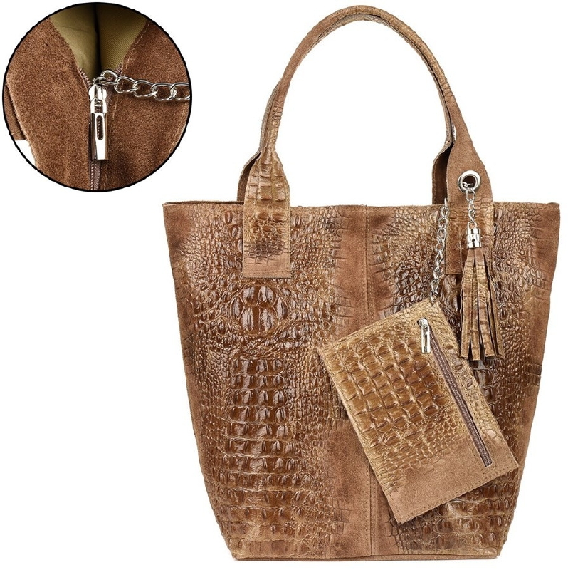 Zamszowa shopperka Vera Pelle kamelowa K51