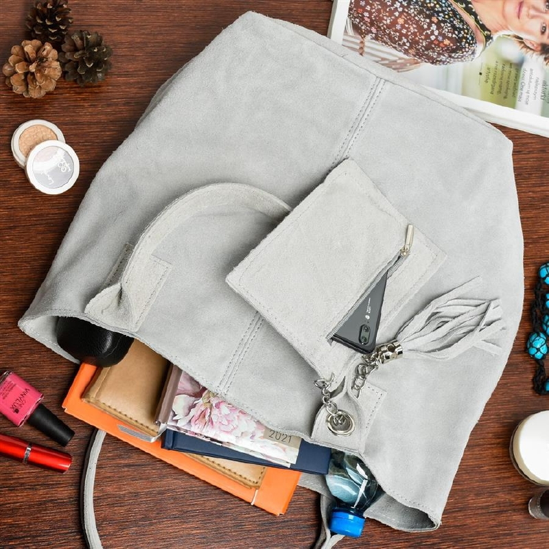 Zamszowa shopperka Vera Pelle c. beżowa taupe K51