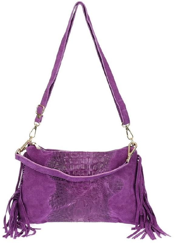 Listonoszka skórzana boho VERA PELLE Z24 fioletowa