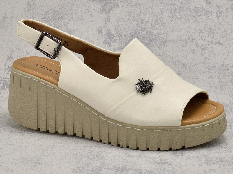 Beżowe sandały damskie na koturnie Vinceza 58467