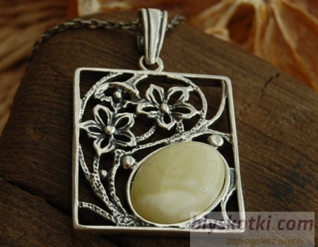 LAURA – srebrny wisior z bursztynem
